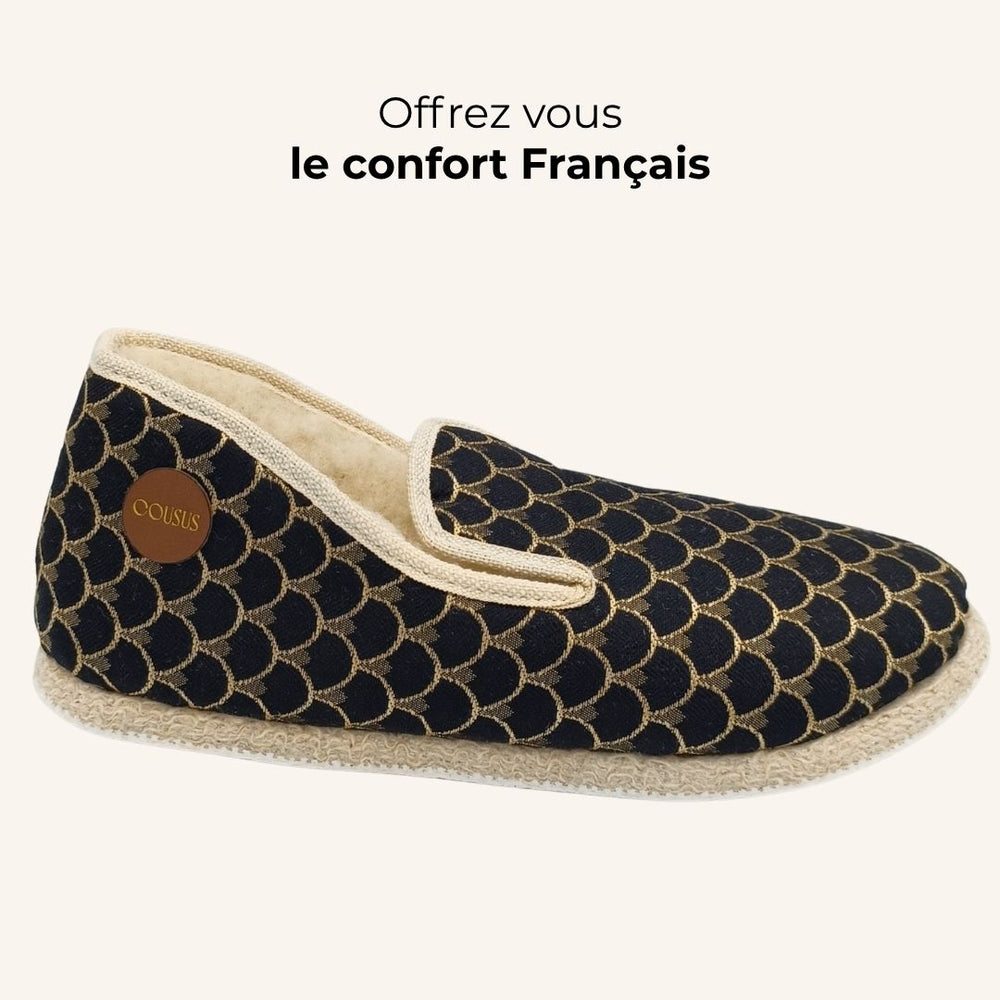 Entre design graphique et tradition charentaise, ce chausson devient une pièce élégante de votre quotidien cocooning, parfaite à offrir ou à s’offrir.