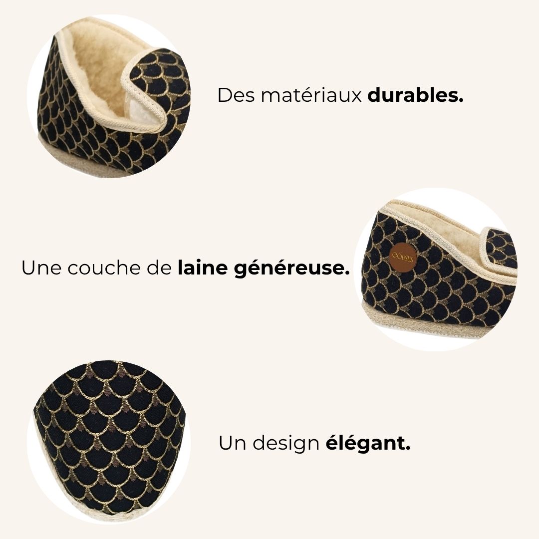 La semelle souple en feutre de laine naturelle tissée apporte un confort exceptionnel et une isolation douce, idéale pour les saisons fraîches.