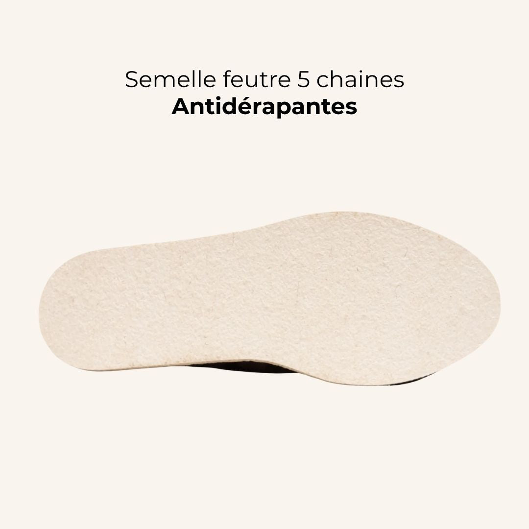 • Semelle souple et antidérapante en feutre de laine naturelle tissée (France)