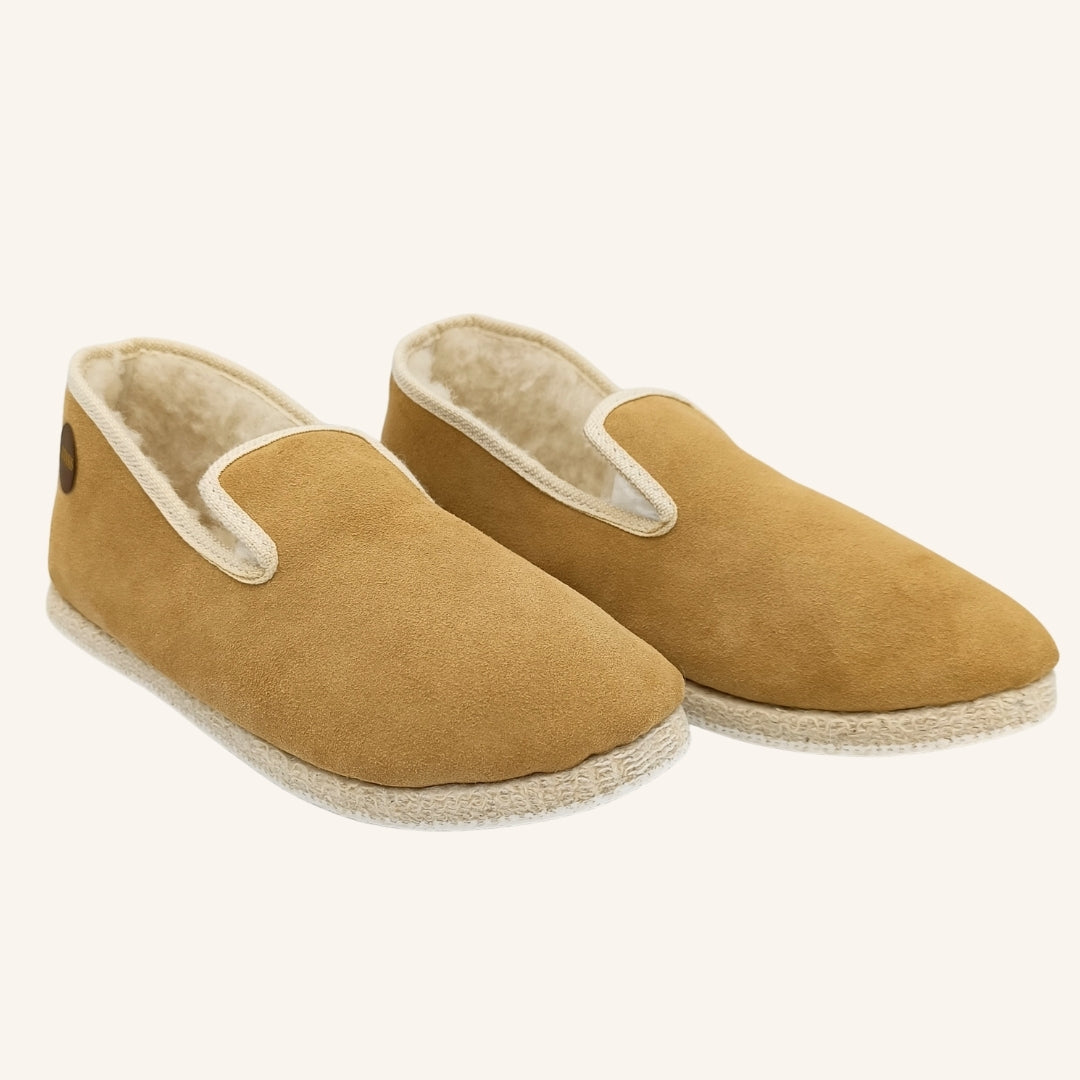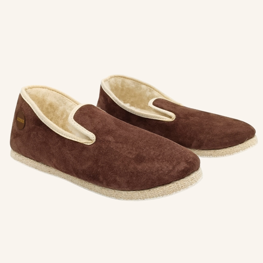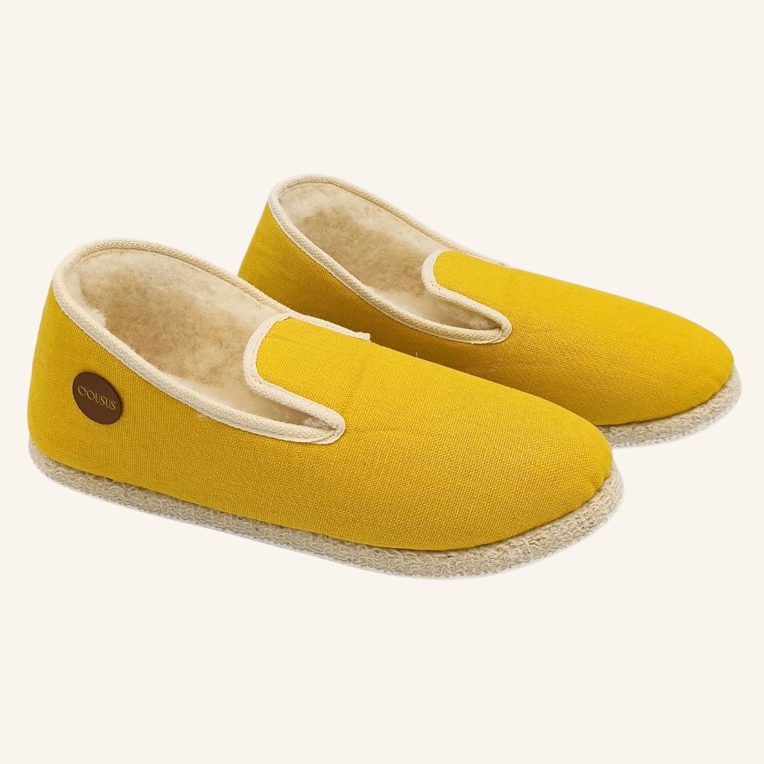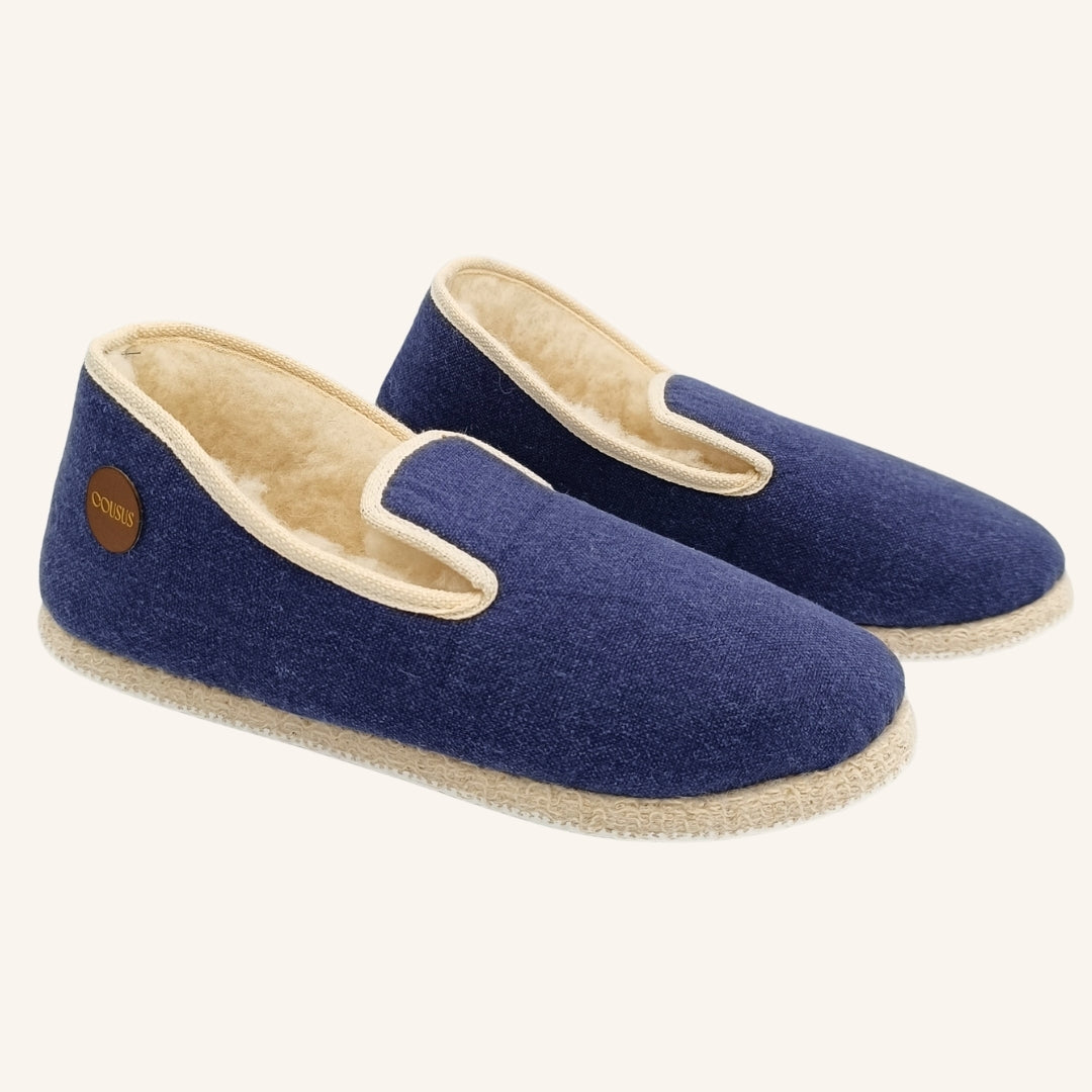L’entretien d’une charentaise Cousus est simple et naturel. Aérez-les régulièrement pour préserver la fraîcheur des fibres. Brossez la laine intérieure avec une brosse douce pour lui redonner du volume. En cas de tache, nettoyez délicatement avec un chiffon humide et un peu de savon doux. Évitez le lavage en machine : laissez la matière vivre, respirer, se régénérer.