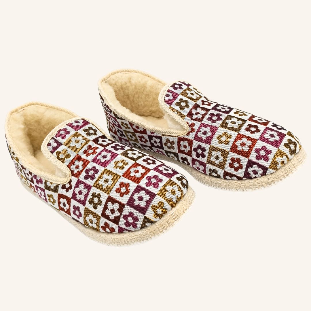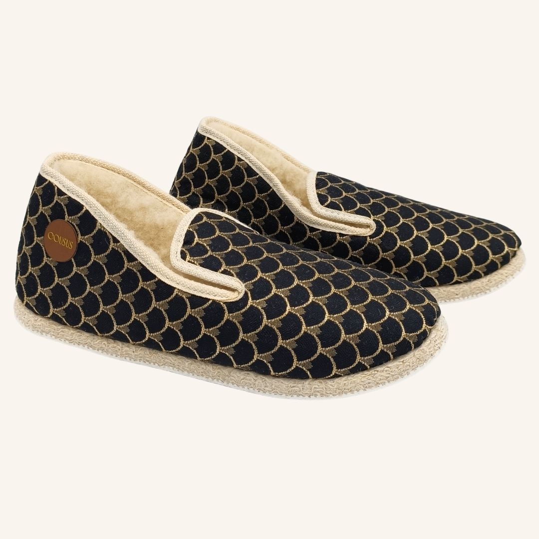 À rebours de la surconsommation, Cousus mise sur la qualité, la durabilité et la transparence. Nos charentaises femme fabriquées en France sont conçues à partir de matières naturelles, renouvelables et locales. Chaque composant — laine, feutre, lin, Jacquard — est choisi pour sa noblesse et sa longévité. Nous produisons en petite série, sans surstock, pour garantir un impact minimal et un respect maximal du travail artisanal.