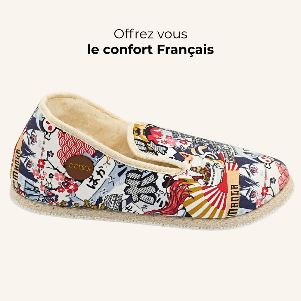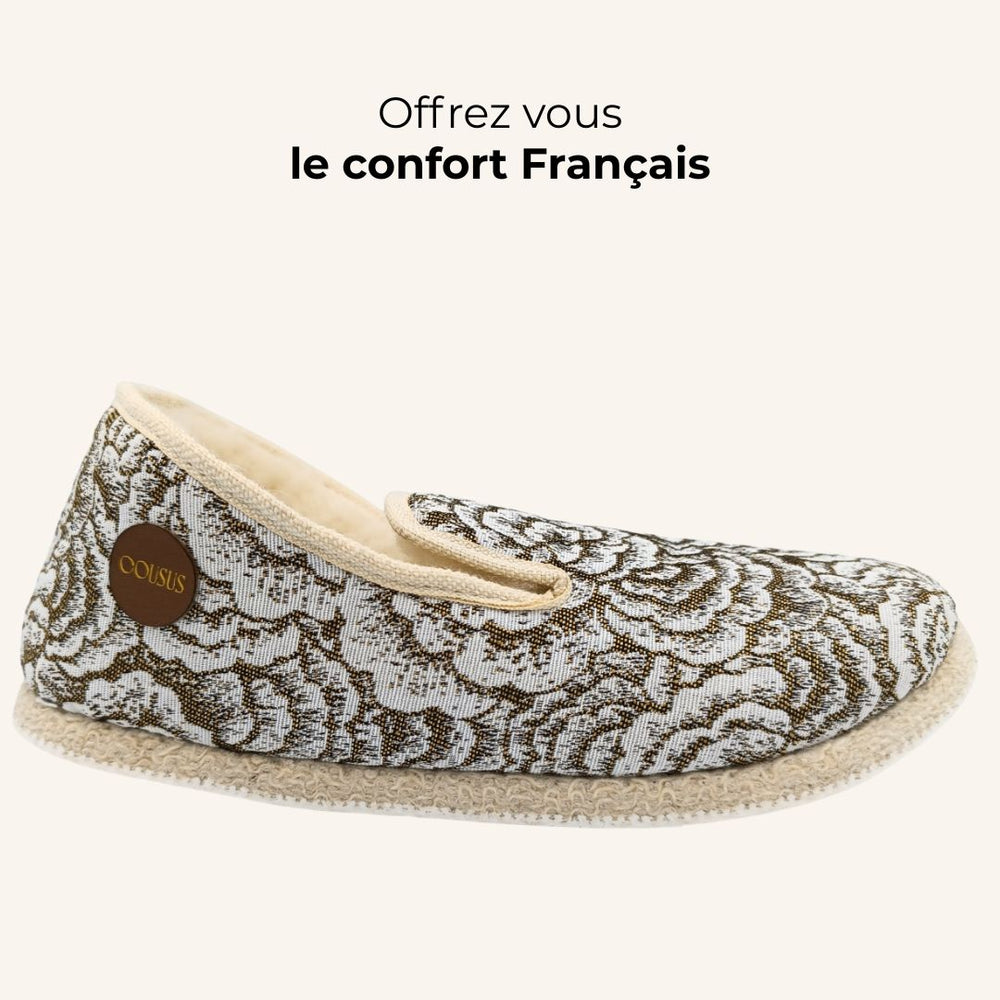 Icône du savoir-faire français, la charentaise évoque la chaleur du foyer, le calme des soirs d’hiver et la délicatesse du quotidien. Mais chez Cousus, elle dépasse son statut d’objet utilitaire pour devenir un art de vivre. Nos charentaises femme sont le reflet d’une philosophie : celle du temps retrouvé, du confort assumé et du soin porté à chaque geste.